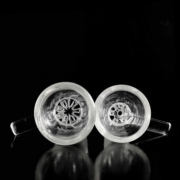 These bowls feature a handle on the side, for easy removal, when the bong needs clearing of the smoke. The handle can go on either side, depending on preference, and is ergonomically designed to be easily picked up with just the thumb and forefinger.