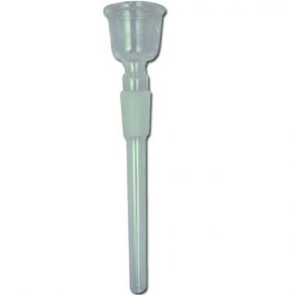 The Replacement Glass Bong Stem has a frosted glass grip part in the neck that is either 14.5mm or 18.8mm wide at the top, this should match the measurement of the hole in the bong that the downpipe sits in. The stem length is how far the stem extends below the frosted grip into the bong, so it is advisable to ensure that it is not too long for the bong that it is being used for or it will not sit securely.
