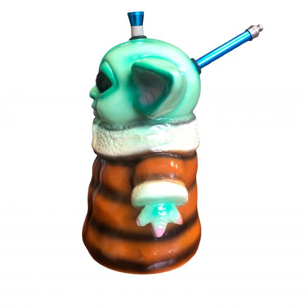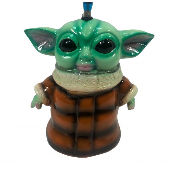 This larger than life-size ceramic bong is a new addition to our collection of space-based pieces. Coming all the way from the Dagobah system in his warm and fluffy robes, this baby grogu bong has a very deep vessel for filling with water, and an even deeper stem, so you won't have to force out a massive pull from this little guy. Just have one long rip and you'll be higher than the stars themselves, with your green friend to guide you.