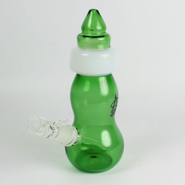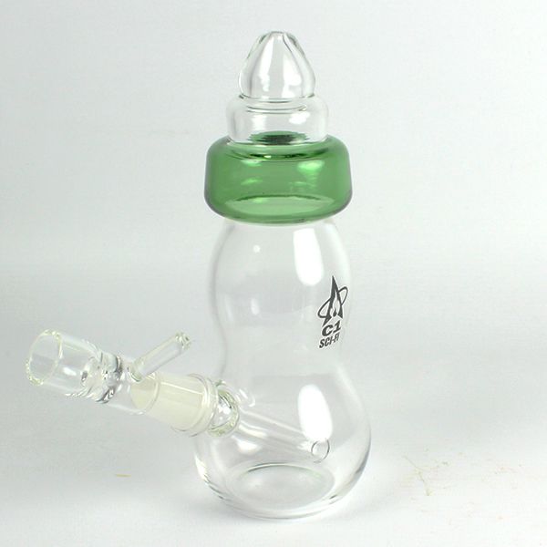 Made from high quality blue borosilicate glass, and shaped somewhat like a baby bottle, this bong would work great as a herb bubbler or dab rig.