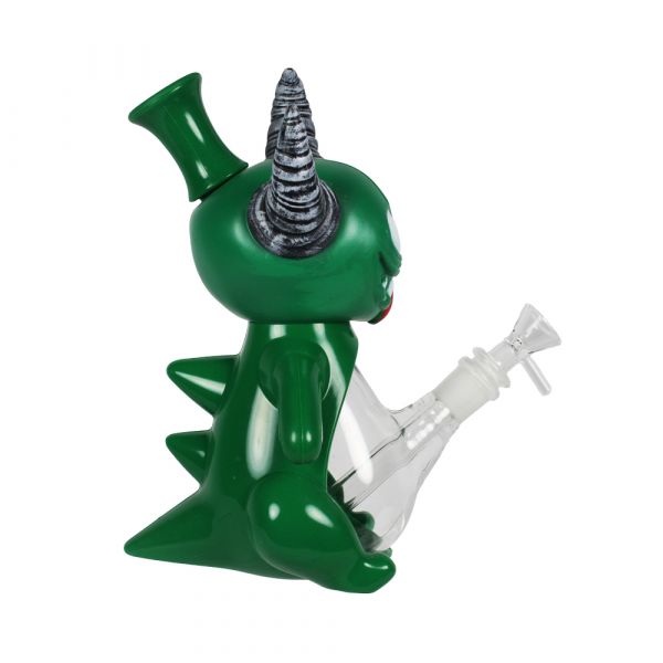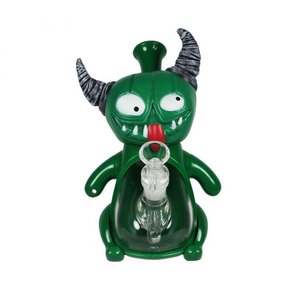 The vivid green character design, complete with shaped horns, expressive eyes, and a detailed sculpted finish, adds lighthearted style without compromising durability. The glossy, wipe-clean resin surface helps prevent the build-up of odour (odor) and allows quick upkeep between uses. Whether displayed on a shelf or stored in a smell-proof bag, its compact footprint and sturdy base make it a reliable everyday companion.
