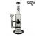 The first lower chamber features a barrel percolator attached horizontally onto the stemless system, so the smoke is cooled and filtered straight from the source. It is then pulled up through the bong to the second chamber/percolator where it is filtered through a diffusor that looks like a complex array of cogs.