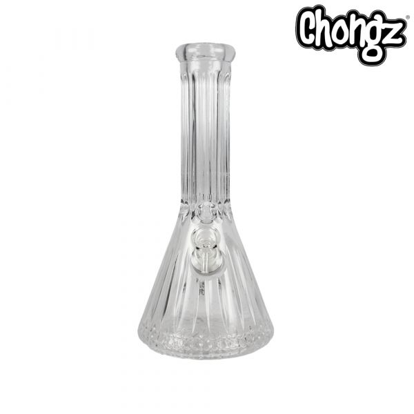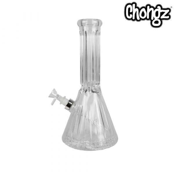 The Chongz 30cm 'Mercy Seat' Cut Glass Beaker Bong is the largest of the trio, engineered for maximum filtration and cooler draws. Built from durable borosilicate glass, it is designed to handle higher airflow while maintaining strength and thermal resistance.