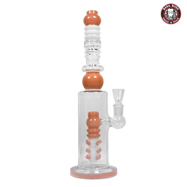 This bulbous bong might leave you a bit rough around the edges if you're not careful. With its amazingly intricate percolator accented by its long clear chamber, you'll fall in love seeing the smoke fill up and rise to the top through this brilliant, rounded piece.