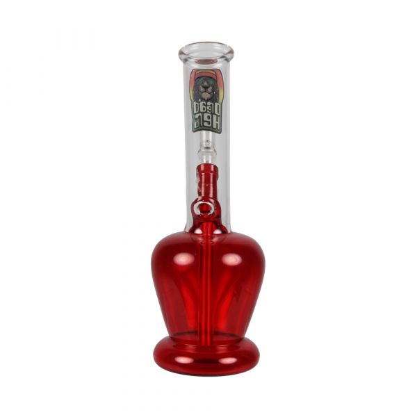 Constructed out of sturdy borosilicate glass, this compact travel bong features a curved neck and contrasting coloured base.