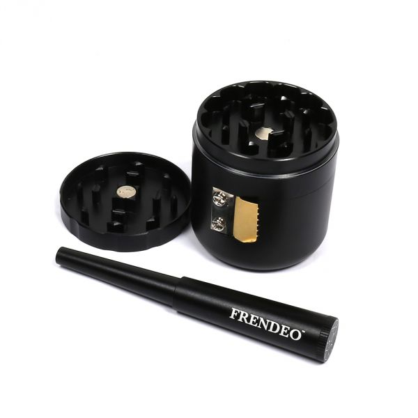 The Frendeo All-in-One Grinder not only works as a sturdy 2-part metal grinder, it also houses a 5m roll of roach card inside, so you'll never be left at a stretch looking for extra card. It also comes included with an easily concealable metal cone holder, a metal gold pokey (located inside the middle of the roach card roll) and an extra 5m roll of roach. With all of these brilliant bits and their useful applications, you'll definitely want to order one of these as soon as you can!