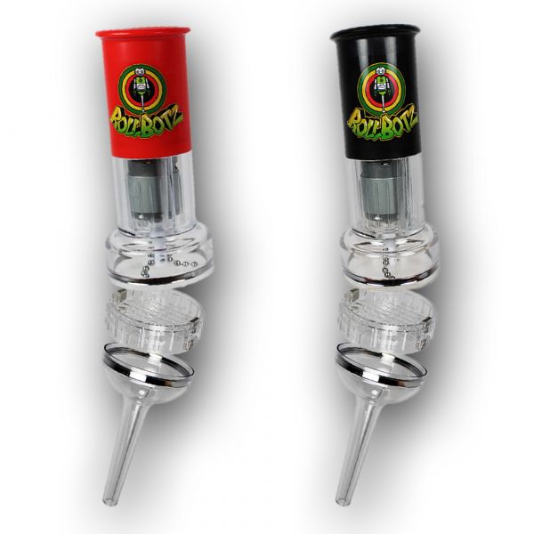 For the final configuration, magnetise the funnel to the screen section and get ready with your cone below. As you hold the button, watch in glee as your finer herbs filter through the screen and down the funnel to quickly and evenly pack out your cone.