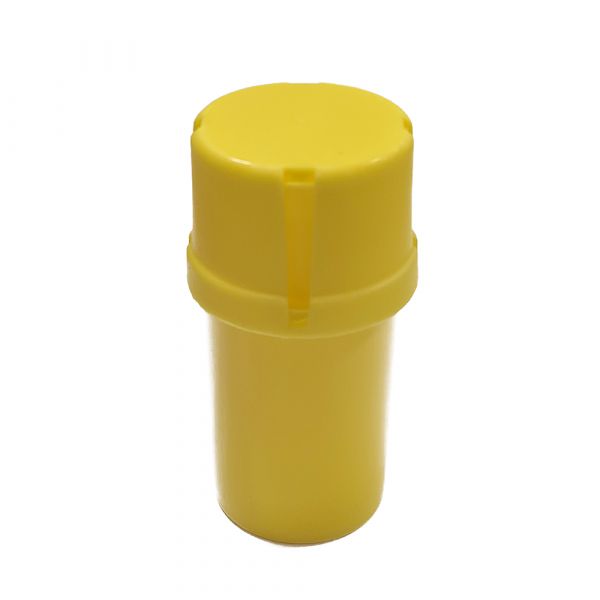 The 'Just Stash It' Airtainer/Grinder is a versatile, dual-purpose product ideal for herb storage and grinding. Measuring 85mm by 38mm, it creates an airtight and watertight seal, keeping contents secure. It features a hidden grinder compartment for conveniently crushing herbs or spices. Available in unbranded blue, green, and yellow, it's a functional, portable tool for both storage and preparation, now offered at a discounted price. Perfect for those seeking a compact and efficient solution for their herbs.