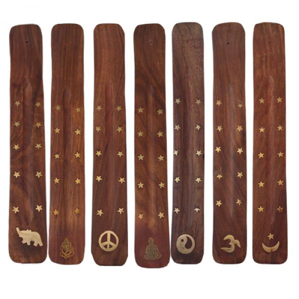 The Embossed Wooden Incense Boats all feature gold stars down either side of the boat, and a detail at the far end. The boats have a hole at one end that will securely hold stick incense in place to allow for clean burning.