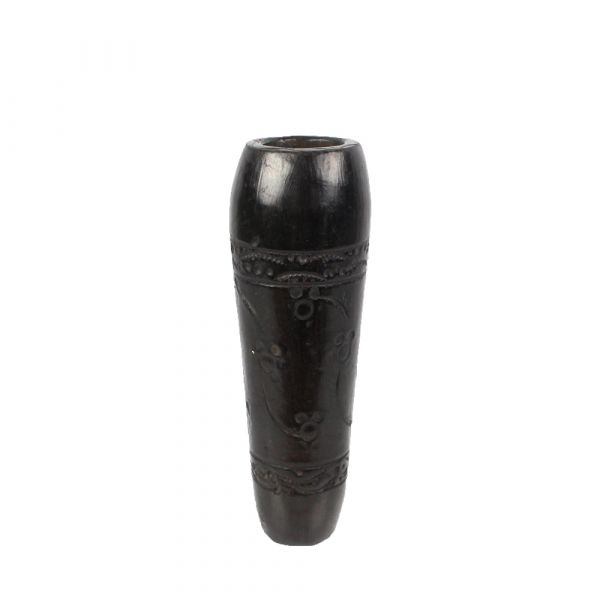 The intricately carved detailing and included stone make this a great value small chillum. Its black clay appearance makes it suitable for a myriad of occasions. Hold the chillum upright and use the stone for stoppage in the stem of the pipe.
