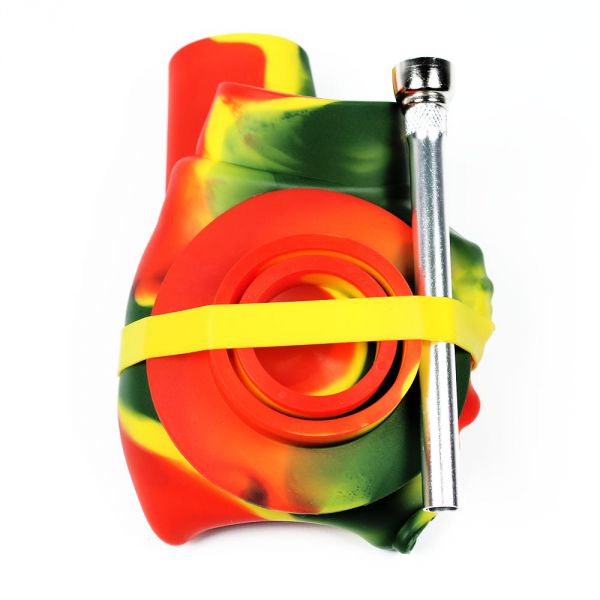 Resembling a cool rasta coloured skull; this pipe is made of silicone, meaning that unlike traditional glass made smoking equipment, it'll last you for a long while as it doesn't run any risk of falling over and thus breaking appart.
