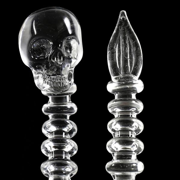 Featuring a spine hanging from a skull, this striking looking tool is unlike any dabber we've sold before. This item measures 13cm long and 1.5cm wide. The skulls are 2.5cm wide, 3cm tall with a depth of 3cm.
