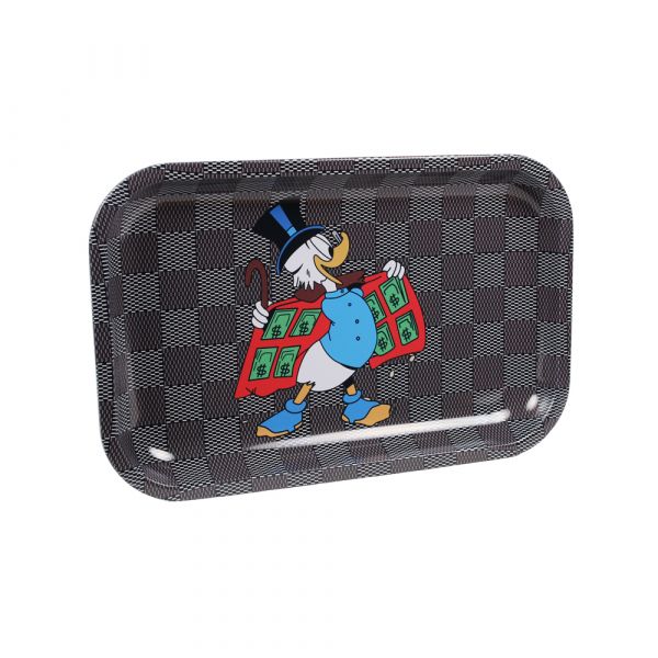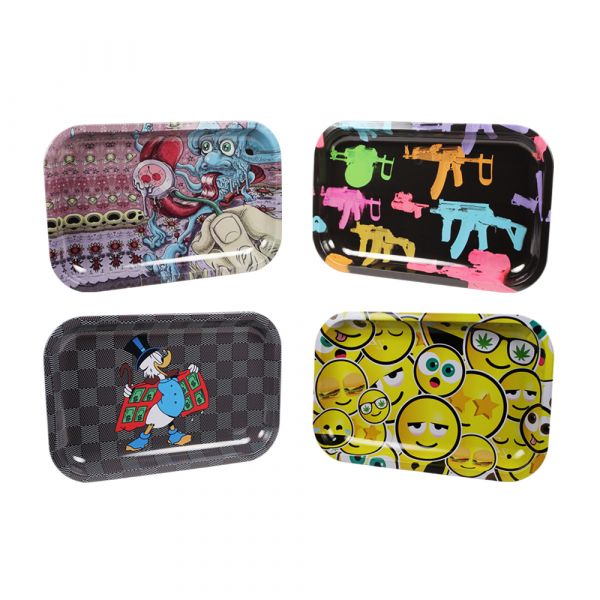 Assorted Metal Rolling Trays are a practical everyday accessory designed to keep rolling papers, filters, herbs and small accessories contained in one clean working area. Made from lightweight pressed metal, each tray provides a smooth flat surface with raised edges that help prevent loose material from spilling onto tables, desks or other surfaces during preparation. The assorted printed finishes also make each tray visually distinctive, while the gold underside adds a simple metallic contrast.
