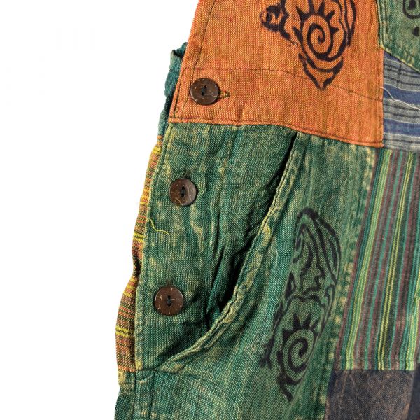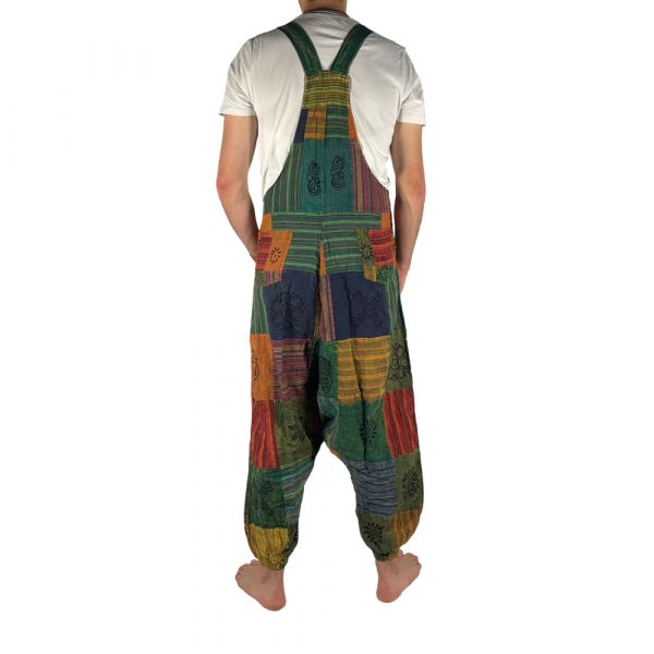 Handmade in Nepal using traditional techniques, these Patchwork Harem Dungarees bring together comfort, creativity, and individuality. Crafted from soft 100% cotton, each piece features a unique patchwork design made from multicoloured panels in varying hues and textures. This artisanal style celebrates character and craftsmanship, ensuring every pair is truly one of a kind. The relaxed harem fit allows for easy movement, while the loose, draped shape offers unmatched comfort and a laid-back, bohemian feel.