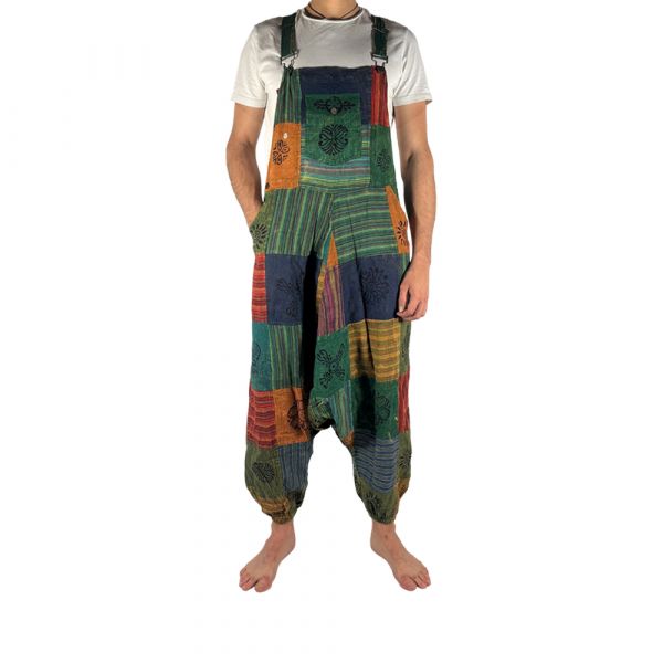 With their flowing fit and vibrant patchwork design, these dungarees perfectly capture bohemian comfort and individuality in one effortless garment.