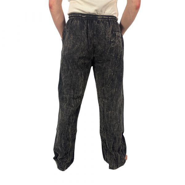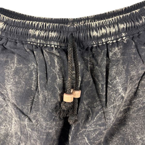 Handmade in Nepal, these Black Cotton Stonewash Trousers combine durability with a distinctive, distressed look. Crafted from 100% cotton, the fabric is breathable yet sturdy, making them a versatile choice for both outdoor adventures and relaxed everyday wear. The stonewashed black finish creates a timeless, rugged appeal that works effortlessly for travel, casual outings, or simply lounging in comfort.